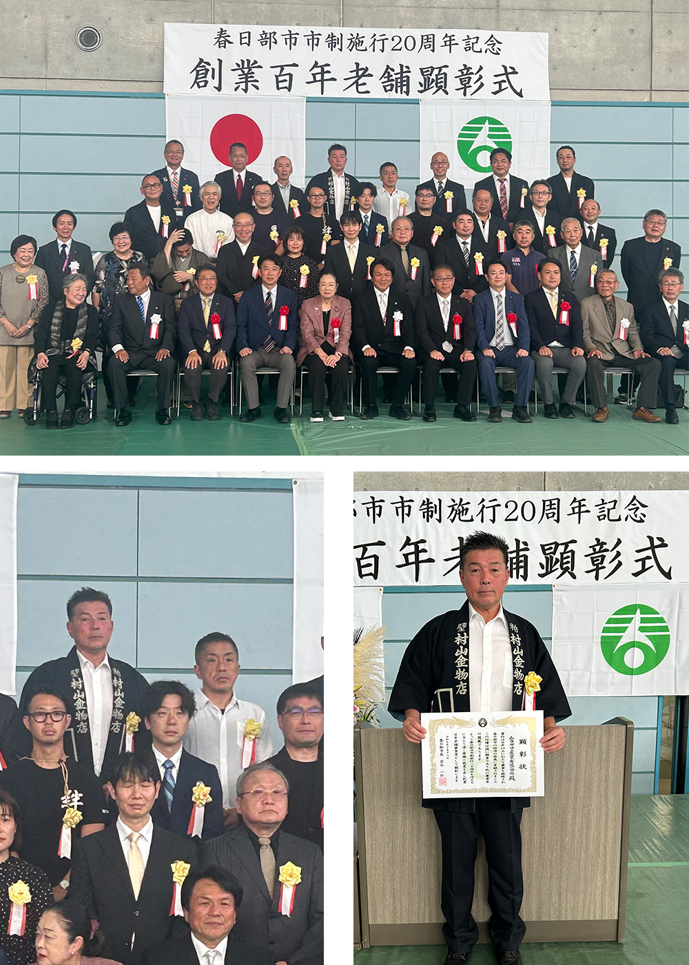 2025年10月、春日部市市制施行20周年記念 創業百年老舗顕彰を受賞いたしました。